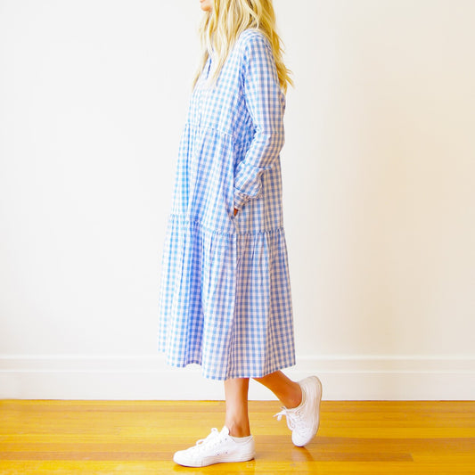 Cate Cotton Blue Gingham Dress