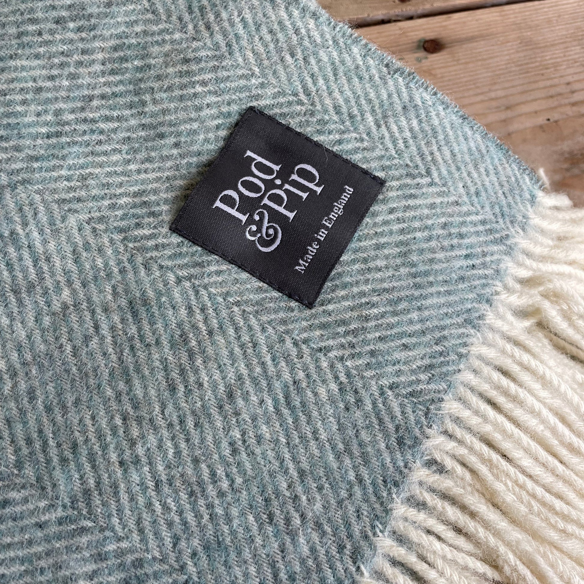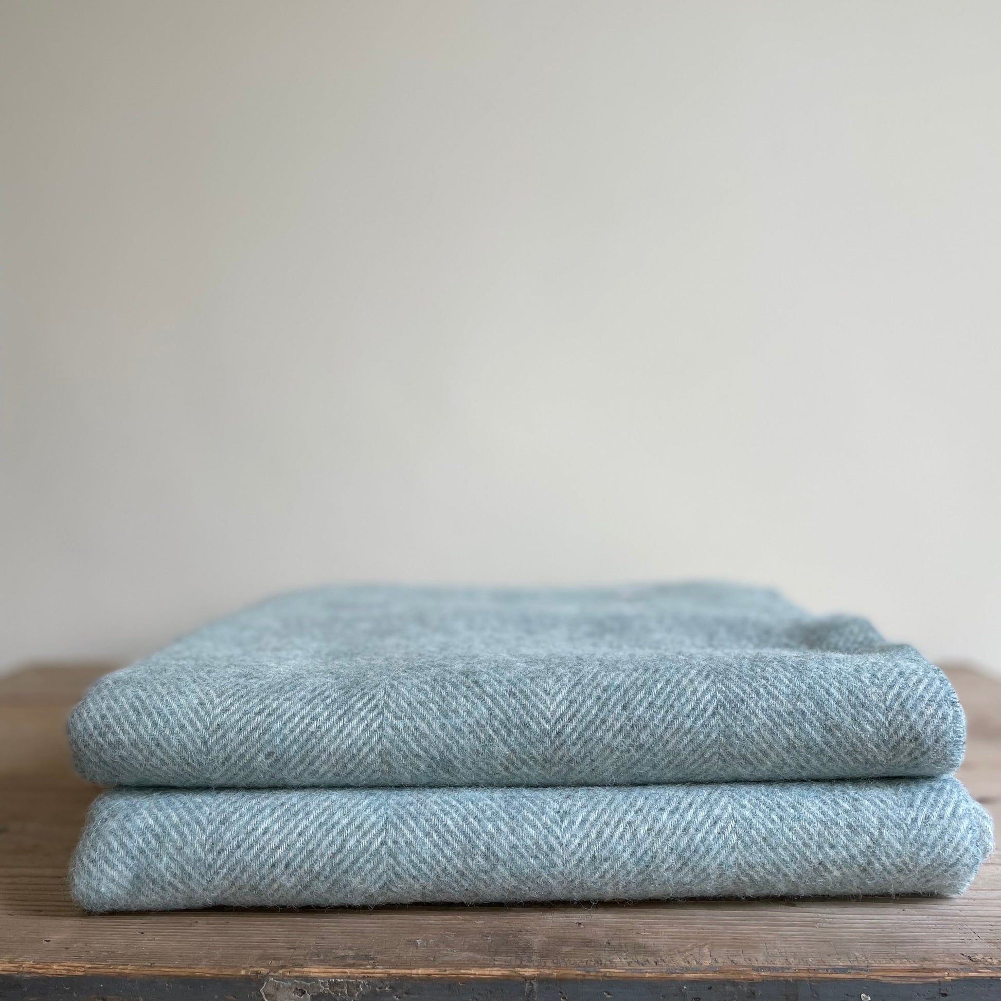 Soft duck egg blue herringbone throw to add a hint of subtle colour and texture with this soft 100% wool blanket.