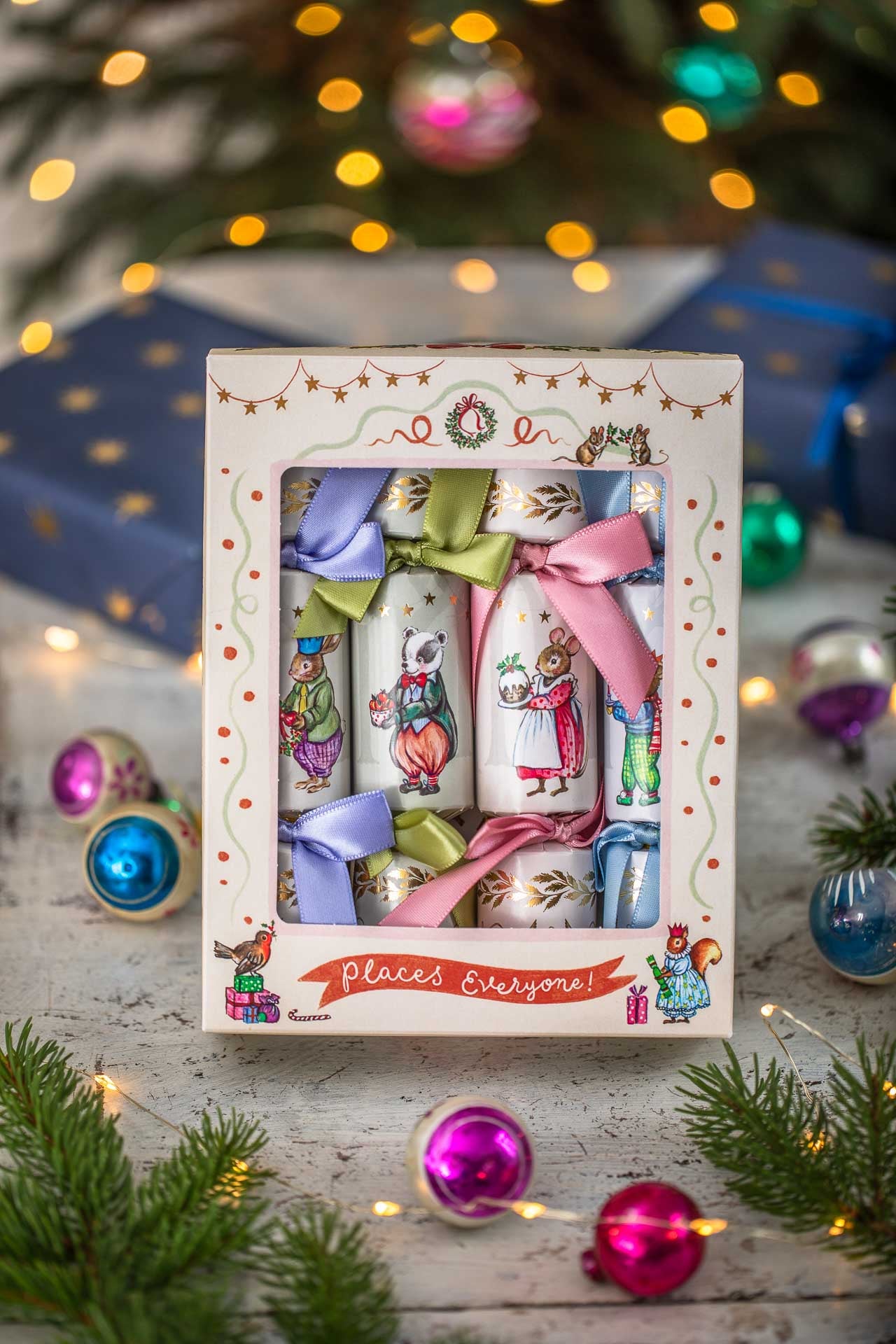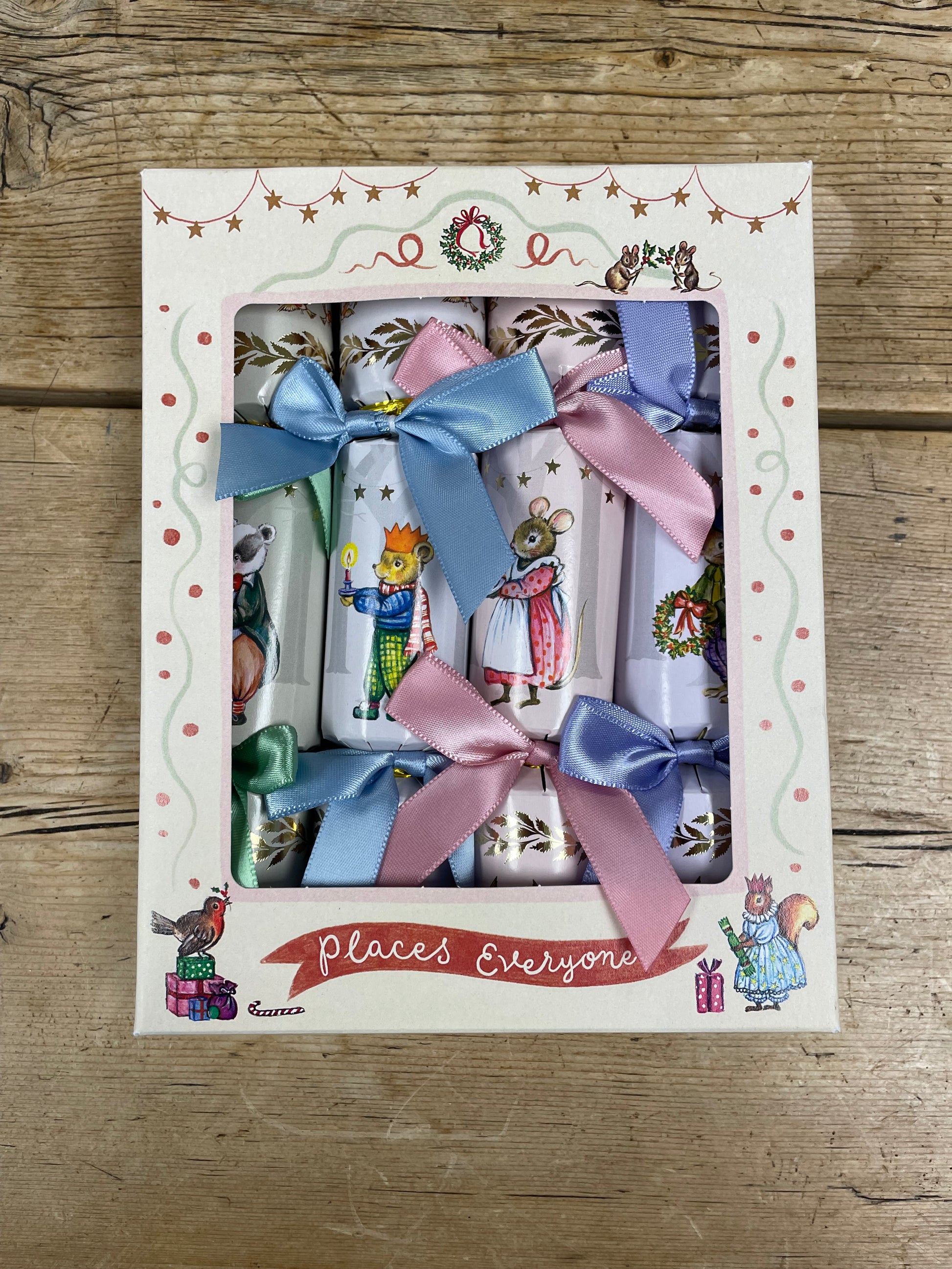 A set of 4 beautifully dainty crackers (8 inchs to be exact) filled with Christmas