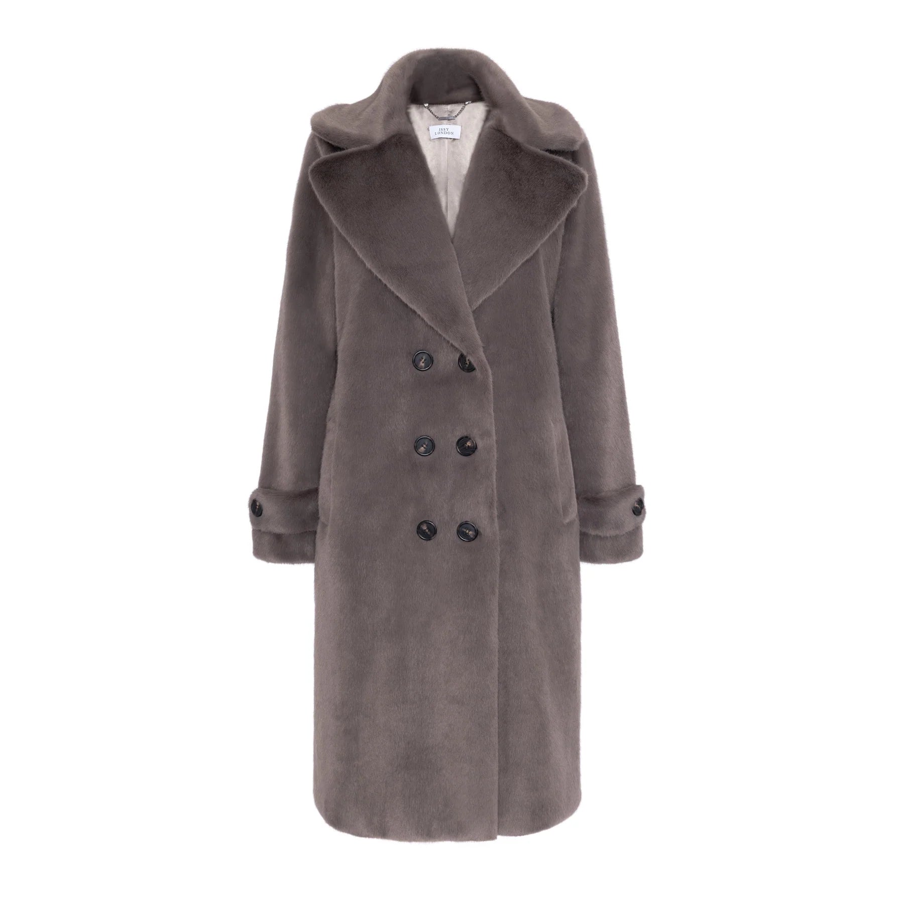 A wardrobe essential which can be pair with jeans for a relaxed look, trousers to smarten an outfit or skirts and dresses to add a glamourous look. Perfect to daytime through to evening styling. Eco friendly super soft faux fur coat with statement collar and double breast buttons