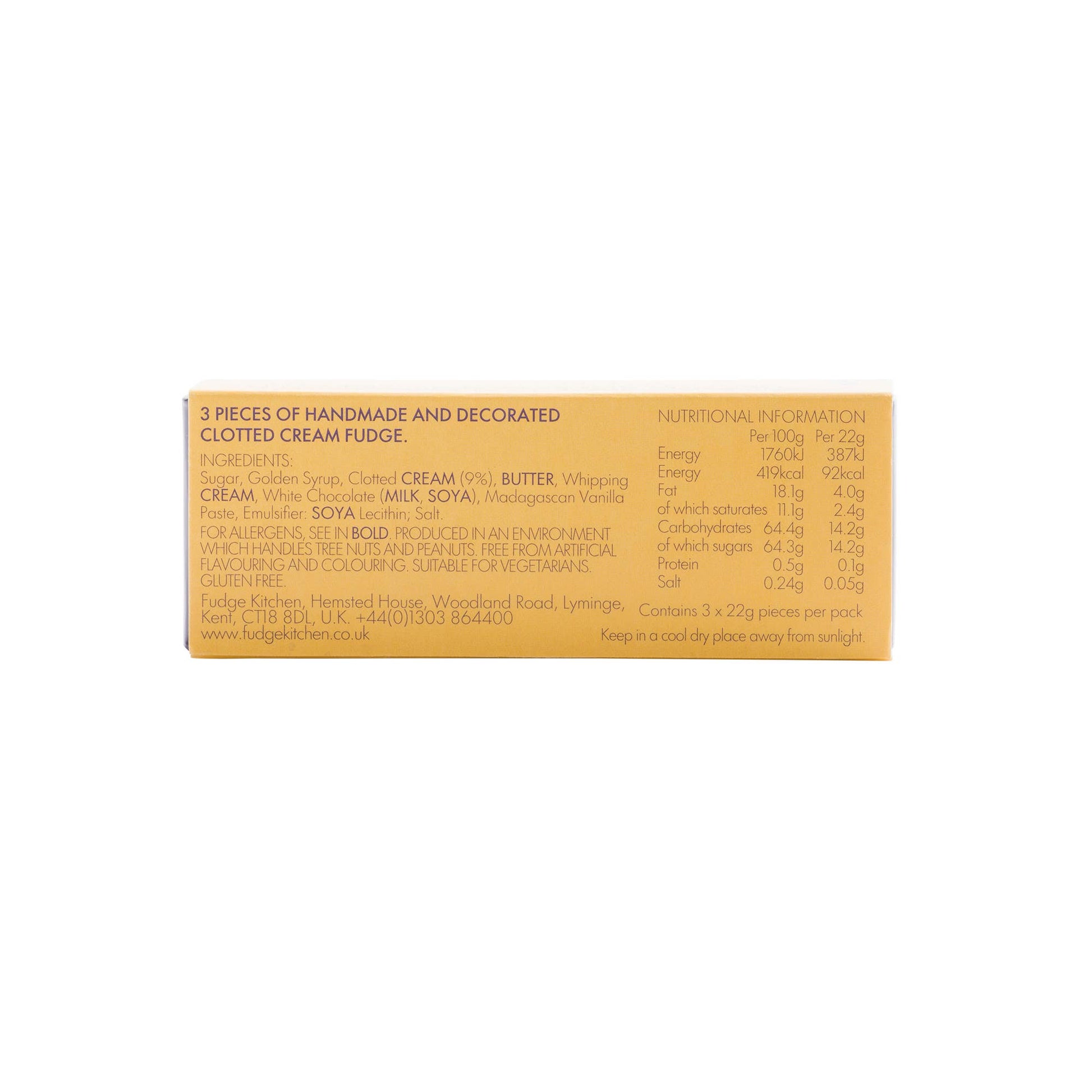 Ingredients: Sugar, Golden Syrup, Clotted Cream (MILK) (9%), Butter (MILK), Whipping Cream (MILK) (8%), White Chocolate (Sugar, Cocoa Butter, Whole MILK Powder, Emulsifier: SOYA Lecithin; Natural Vanilla Flavouring), Madagascan Vanilla Paste, Emulsifier: SOYA Lecithin; Salt.
