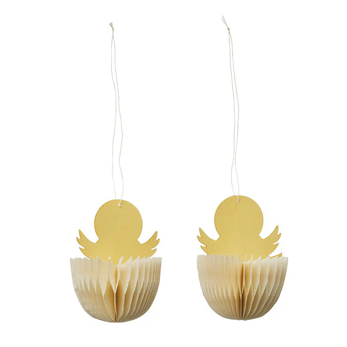 A set of 2 honeycomb Easter chickens in pale yellow hues.