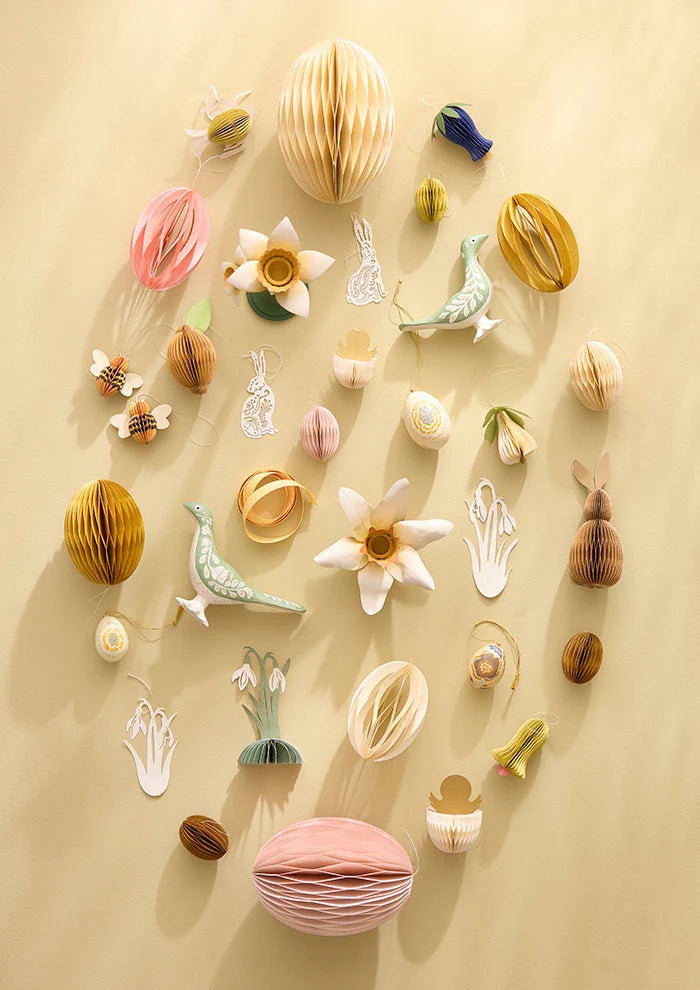 Add a touch of charm and joy to your springtime bungalow with these exquisite folded Easter eggs. Perfect for decorating your home, to suit any style or space. Simply unfold the egg and secure it effortlessly with the built-in central magnet. Once the season is over, fold them back up for easy storage, ensuring they stay pristine for years to come.