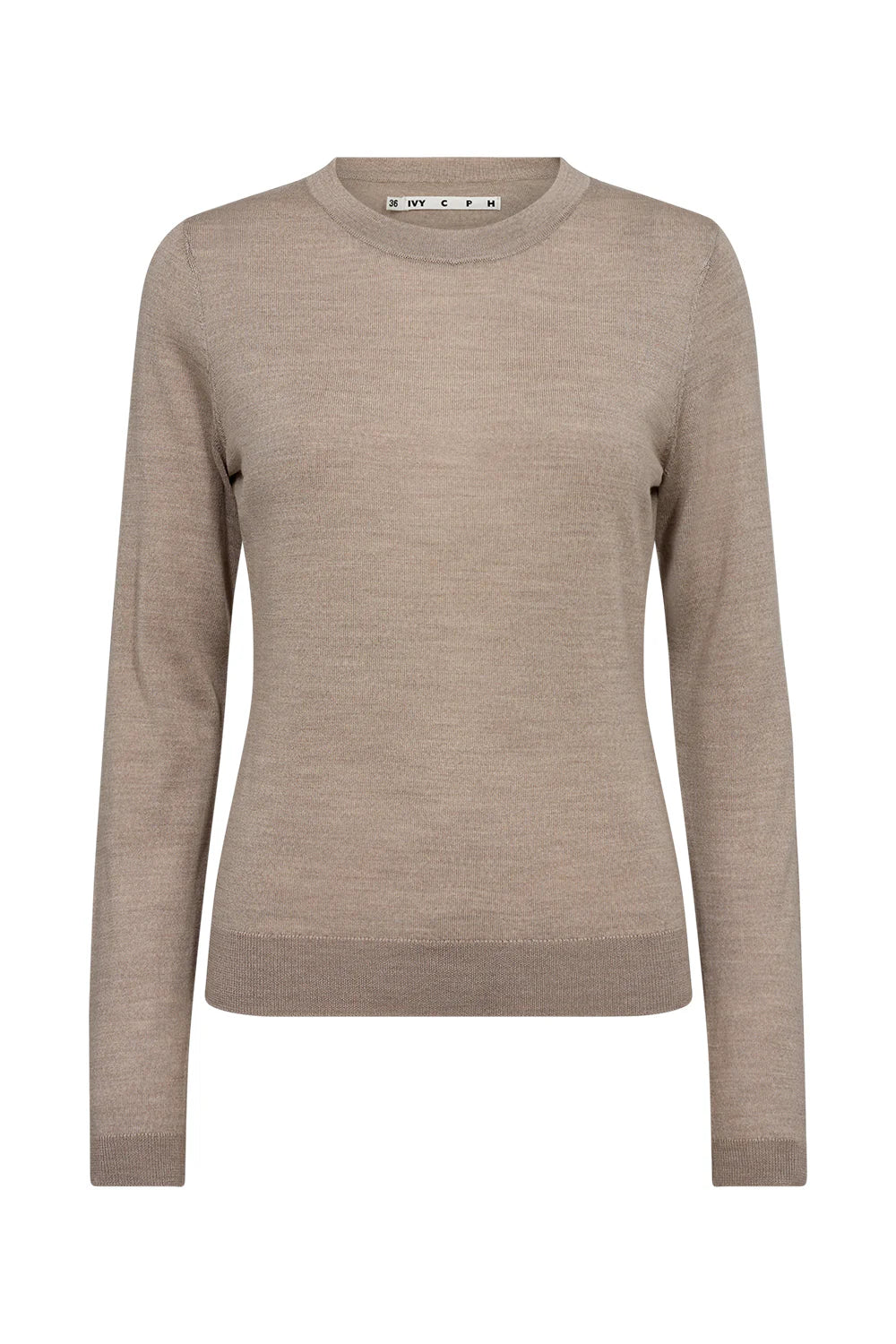 Lightweight sweater top perfect for layering or wearing on its own in this classic crew neck style with delicate rib details around the cuff and hems.