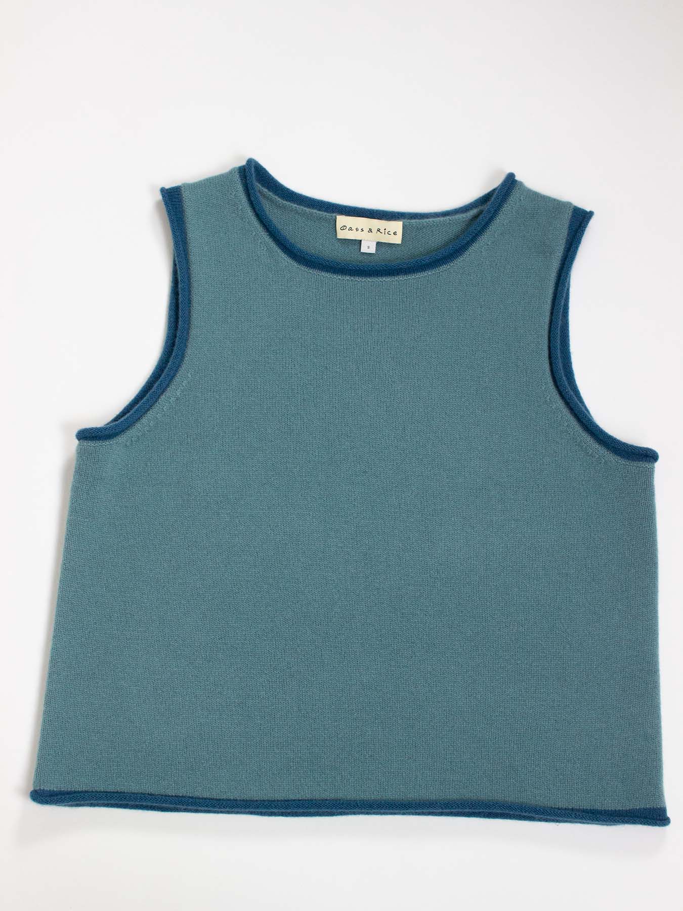 Made from luxurious 100% organic cashmere this super tank top makes a cosy statement in your Autumn wardrobe. It's contrast rolled edge detailing make this a stand out piece but at the same time has a laid back, relaxed look with its oversize loose fit. A great layering piece.